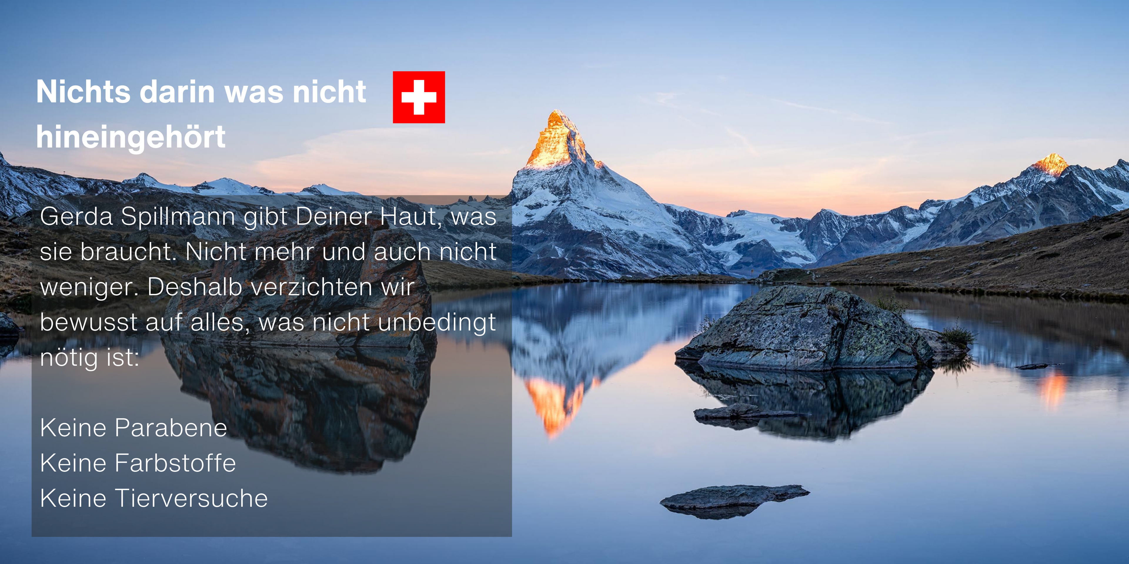 • Schweizer Gletscherwasser - Hält deine Haut hydratisiert und erfrischt.