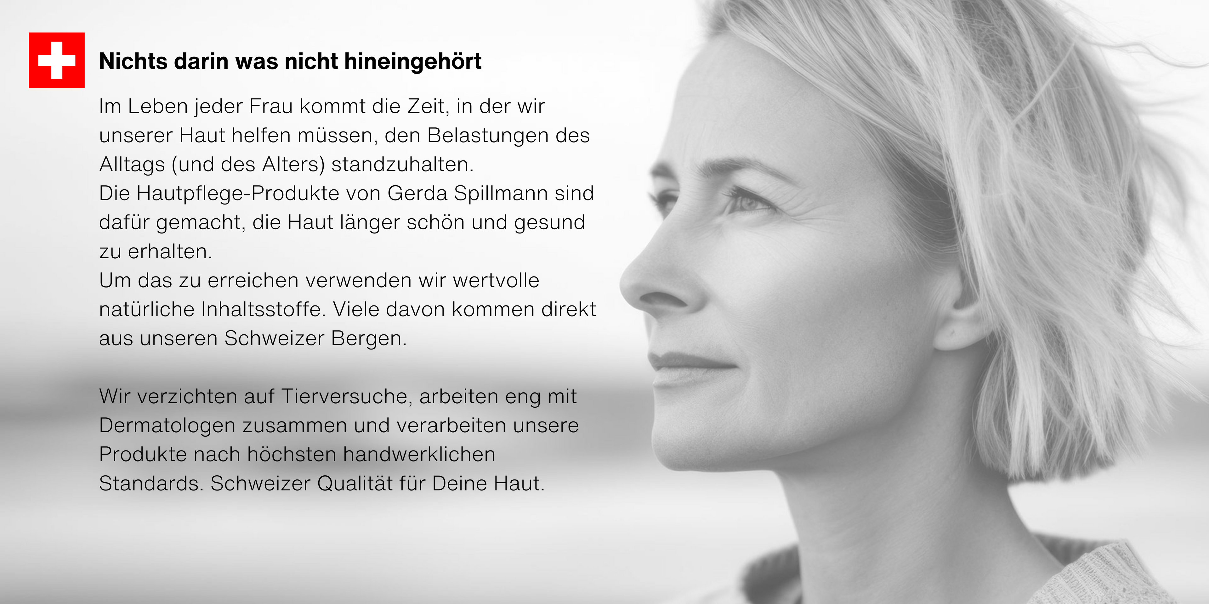 - Schweizer Gletscherwasser - Spendet Deiner Haut Feuchtigkeit und hilft, die anderen Inhaltsstoffe gut zu verteilen.